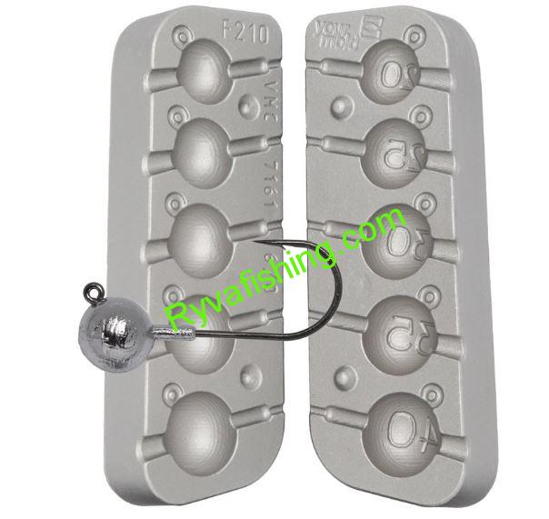 Forma na jigové hlavy F-209.Do formy pasují háčky typ VMC7161 6/0-VMC 5150 5/0.Forma má tyto gramáže 20,25,30,35,40g.